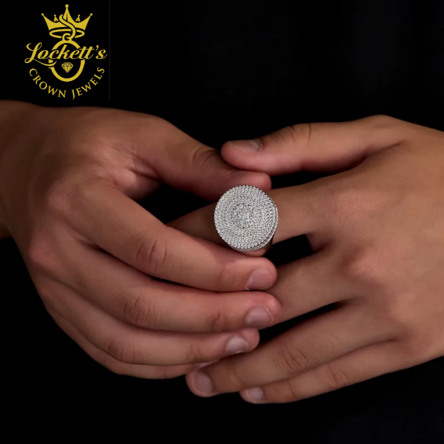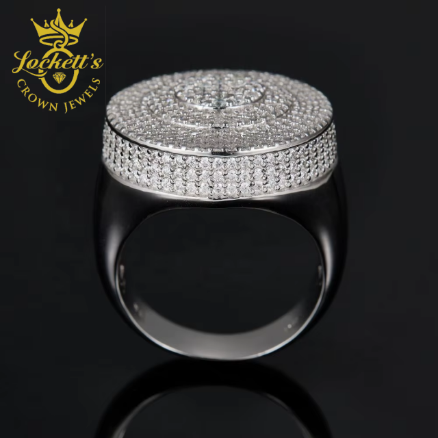 Make a bold statement with our De Round Design Iced Out Men Ring, a stunning piece that embodies luxury and individuality. Crafted from high-quality 925 sterling silver, this ring is fully iced out with VVS Moissanite stones, offering unparalleled sparkle and brilliance. Perfect for those who appreciate unique jewelry that stands out, this ring is a must-have for any fashion-forward man.