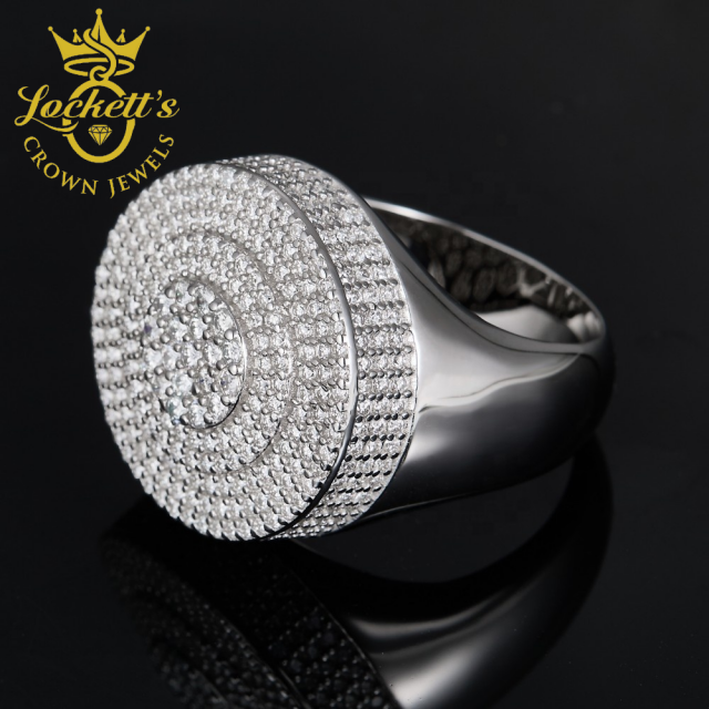 De Round Design Iced Out 925 Sterling Silver Fully Iced VVS Diamond Custom Moissanite Men's Ring
