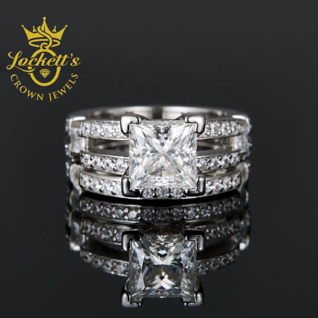 Style S925 Silver Princess Ring Gift – Square 3 Carat Radiant Cut Moissanite Ring Set